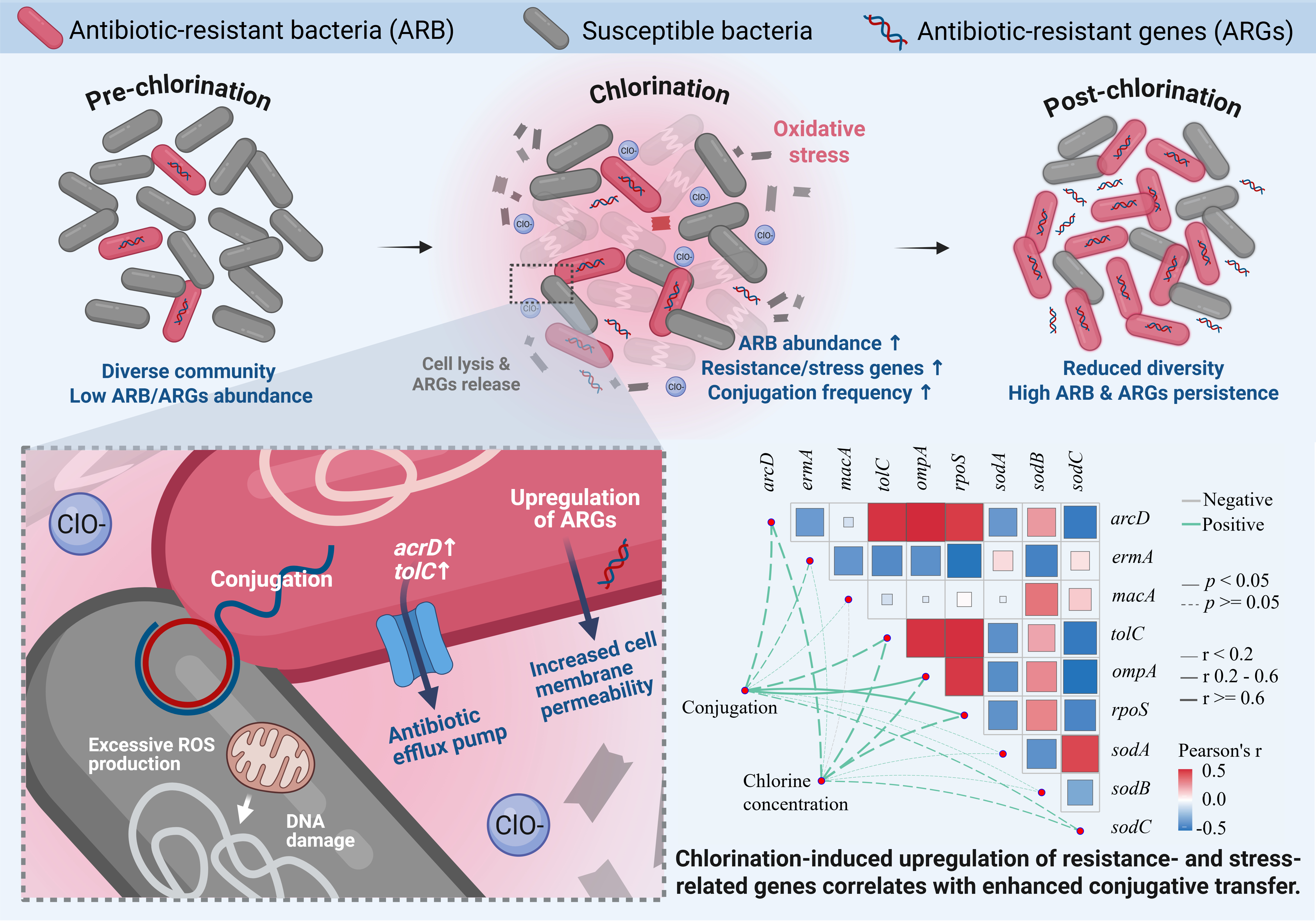 D. Guo, C. Yuan, C. Zhang, M. Zheng, G. Wang, L. Liu, G. Chen, Chlorination promotes antibiotic resistance dissemination via conjugative transfer and stress response in reclaimed water, J. Environ. Manage. 404 (2026) 129588. https://doi.org/10.1016/j.jenvman.2026.129588.