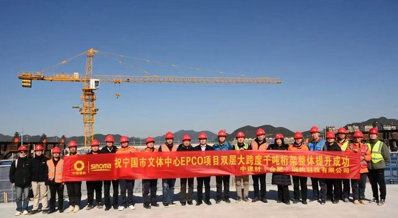 2025年1月16日宁国市文体中心双层大跨度千吨桁架整体提升成功
