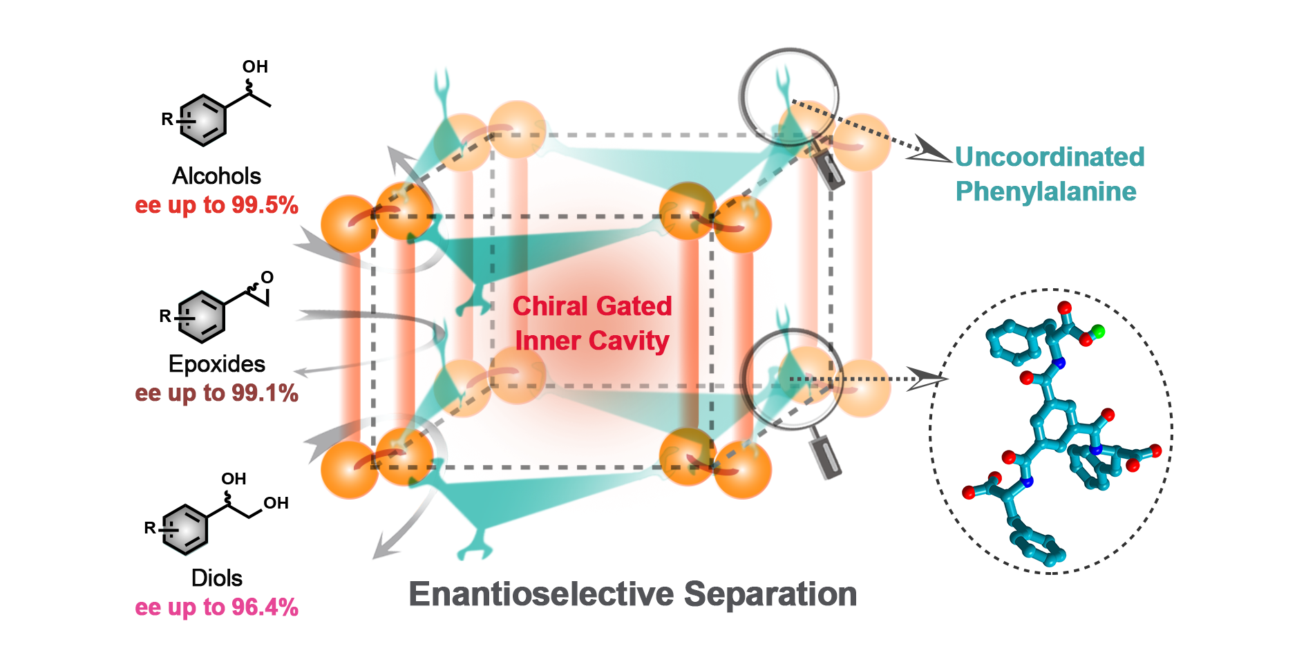 Abstract:A chiral metal–organic framework (CMOF) with accessible binding pockets and multiple recognition sites is constructed from a tricarboxylate ligand derived from phenylalanine. The CMOF features a rare structure with cavities encapsulated by a non-coordinated amino-acid moiety. It has been proven to be an efficient and recyclable chiral host, enabling adsorbing and separating racemic alcohols, diols, and epoxides with excellent enantioselectivity.